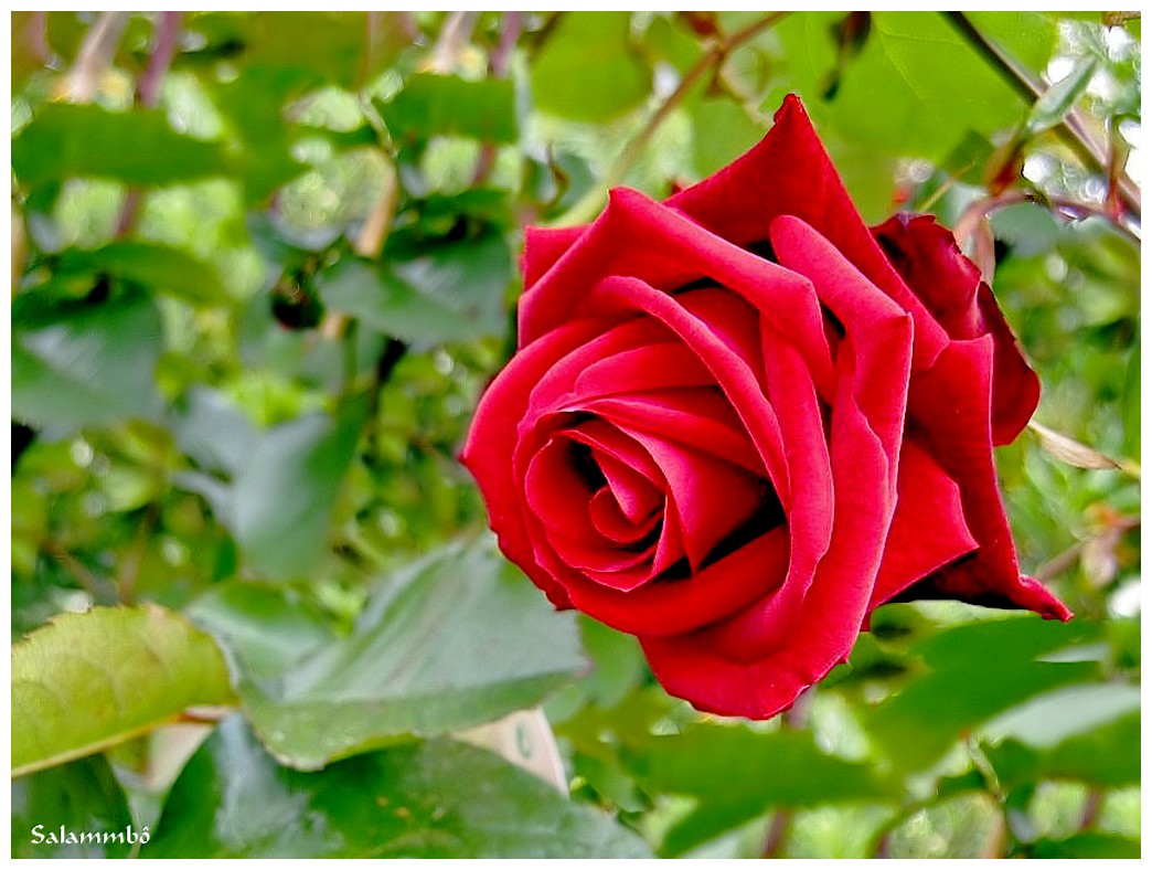 « Salammbô » d’un rouge vif c’est un vieux rosier Normand Delbard 1995.