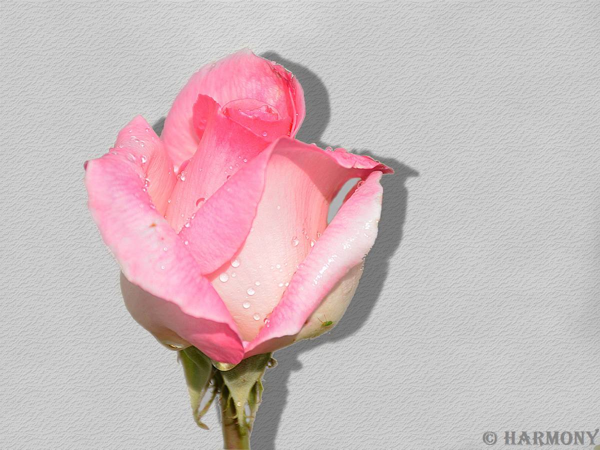 Coucou ma Belle Harmony, l’amie de la nature et des roses! elle est magnifique ta rose, tu t’es amusée mais tu connais mes goûts je suppose, l’original est déjà très joli… le fond est déjà flouté c’est une réussite, et la rose perlée de rosée, elle est divine et fière, et on devine ses jolies nervures, entrouverte, elle ne dévoile qu’un aspect de sa robe bicolore et tendre à souhait! je prends lol tu sais toujours choisir de belles fleurs et de belles couleurs, raffinées et douces!