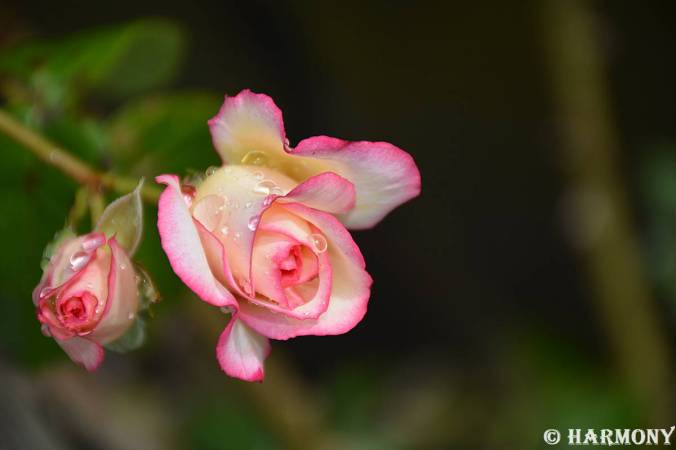 Hello ma Belle pas eu le temps de choisir ni de répondre mais tu as choisi selon ton coeur la plus belle des fleurs: LA ROSE et il me semblait bien la reconnaitre! LA ROSE HANDEL: une belle symphonie de couleurs jusqu’en plein coeur! Merci à ton ami JPierre, on reconnait l’artiste et le connaisseur! Ces boutons de roses, je les adore et je te remercie de ce beau cadeau que tu offres: les roses ourlées de perles d’eau sont sublimes, elles s’ouvrent à la vie et à la lumière, elles s’avancent comme pour exprimer leur désir de communiquer, l’une en plein jour, l’autre en retrait qui tente de la copier pour paraitre aussi belle!