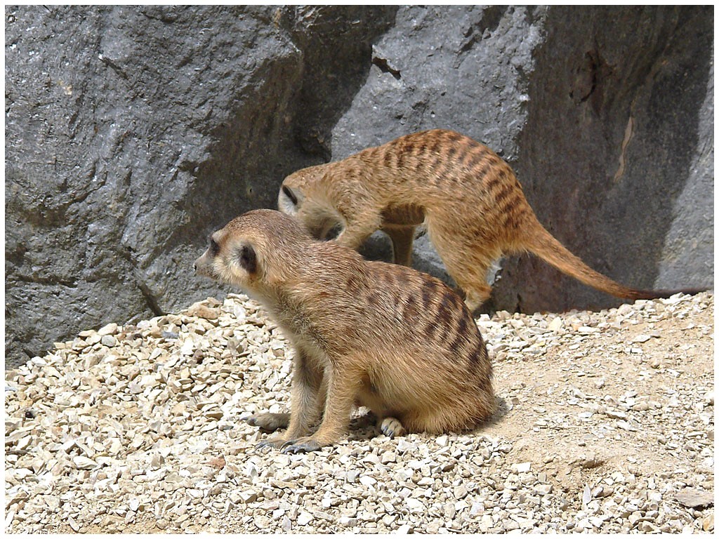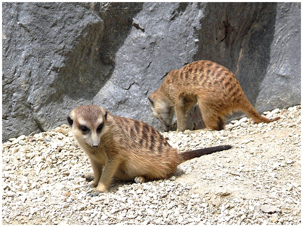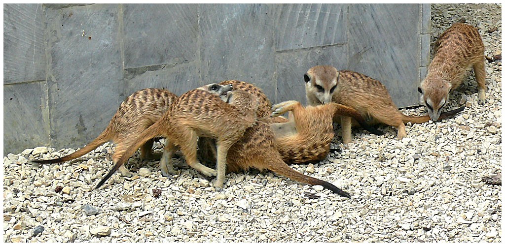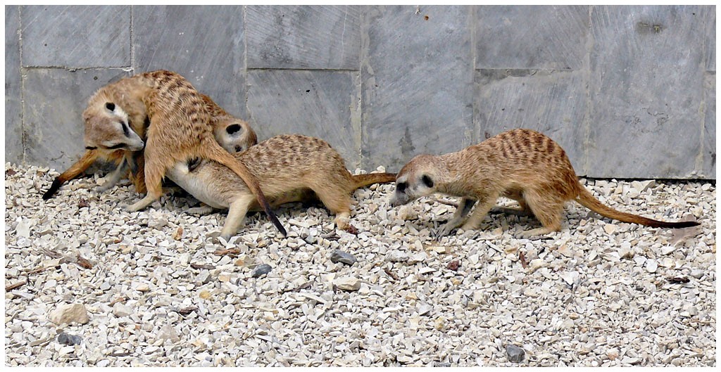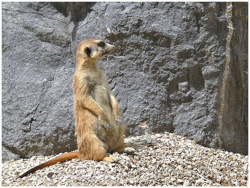 Mesurant de 26 à 38 cms, le suricate mange entre autres des insectes, des petits reptiles,