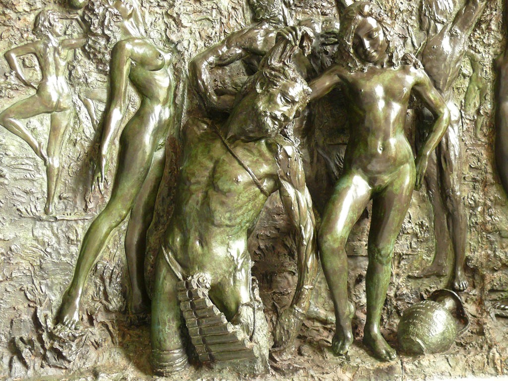 Au fond à droite,un haut relief « Marsyas et les Nymphes »,sculpté par