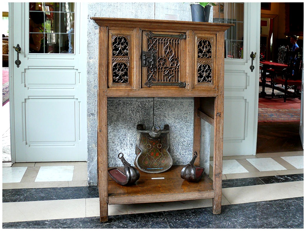 Petit meuble avec en dessous:selle et étriers.