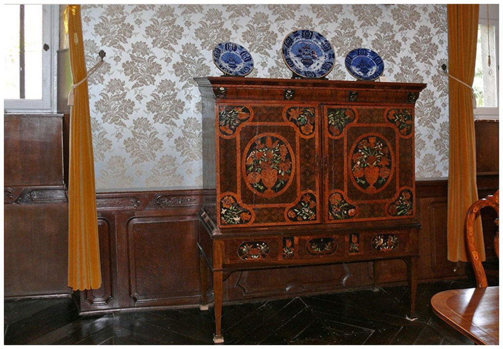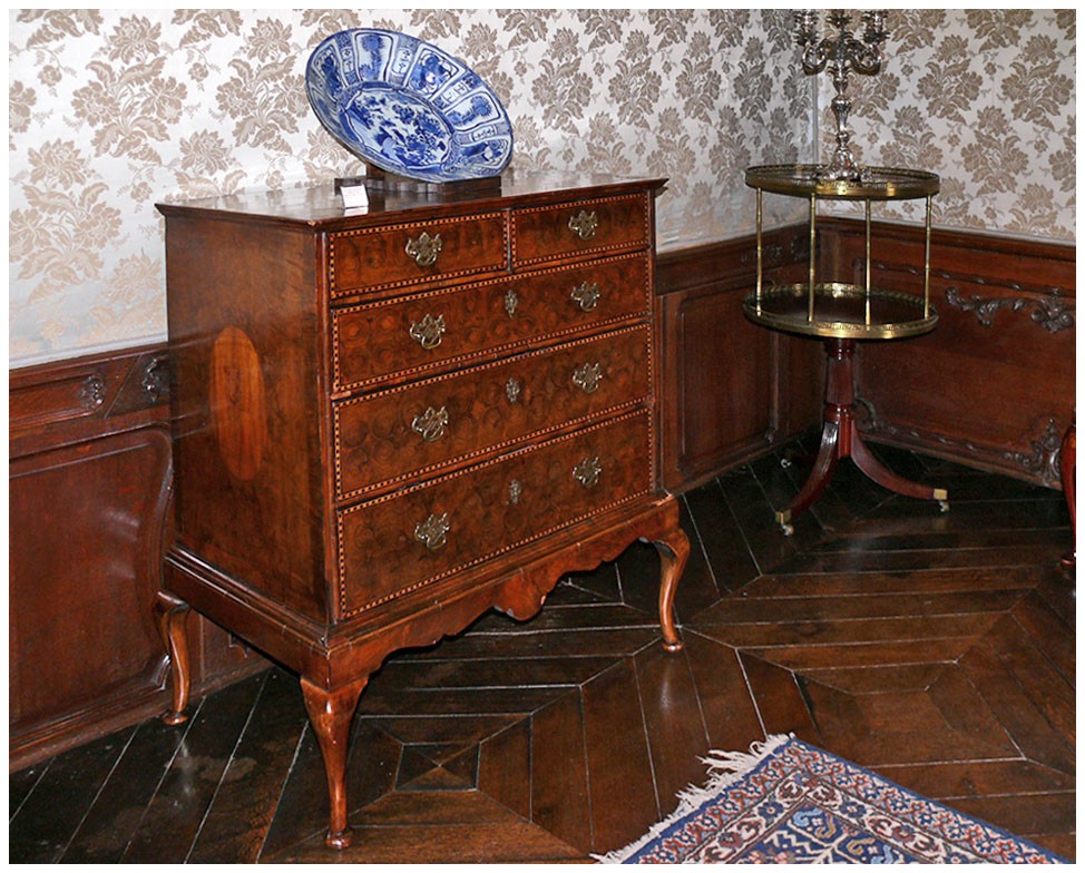 Décoration qui se trouve de chaque côté d’une dresse de fabrication anglaise du XVIIème siècle.