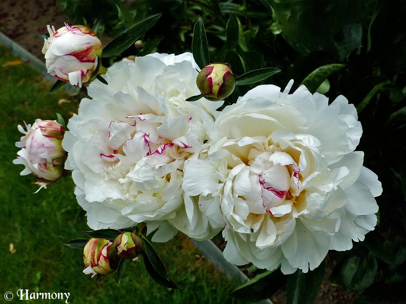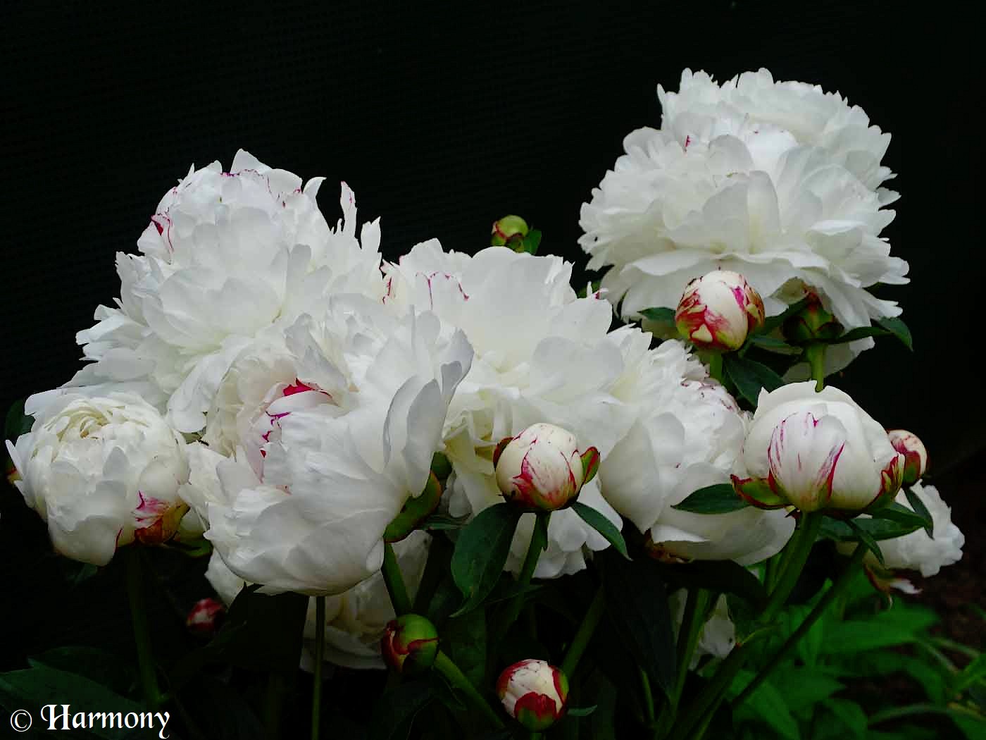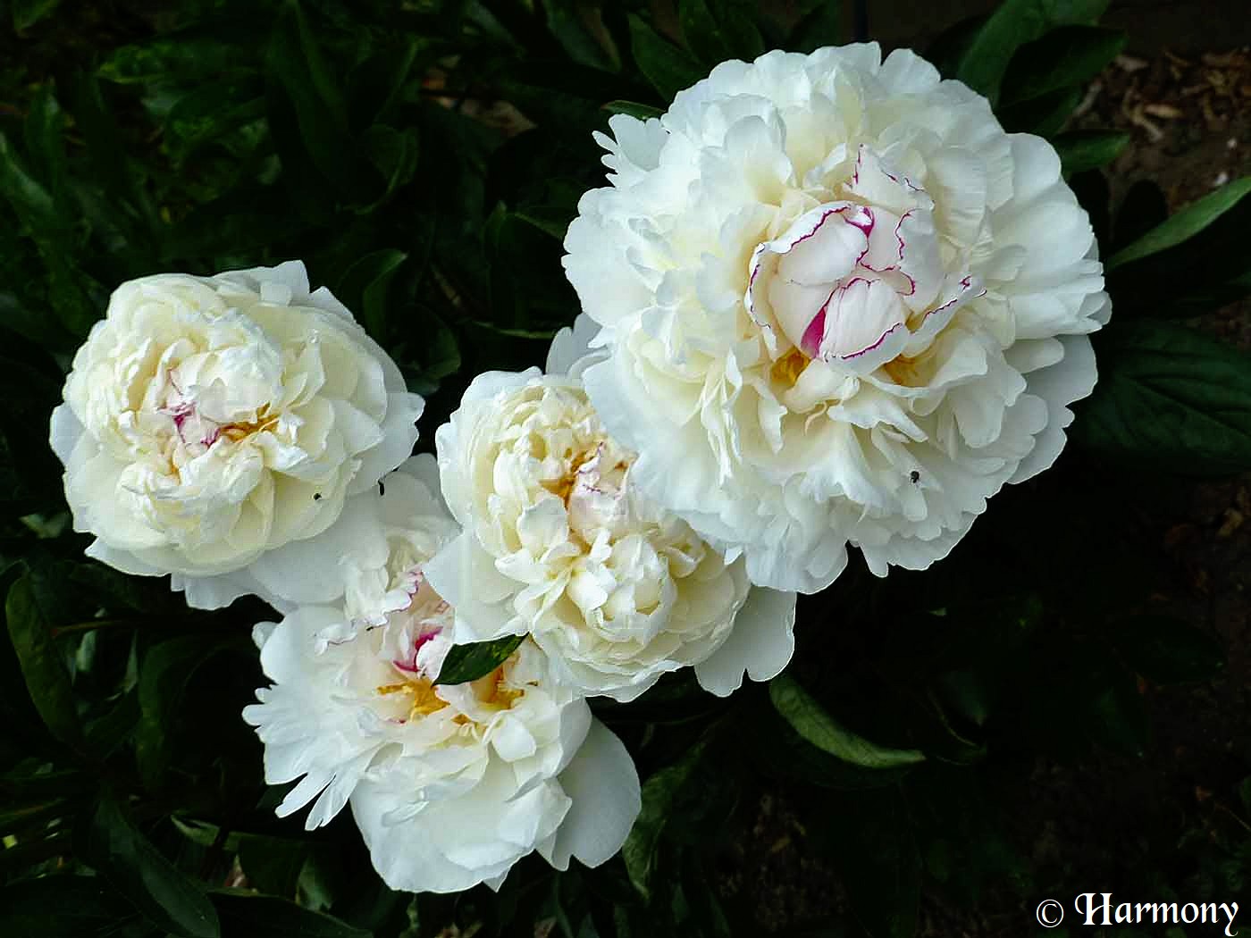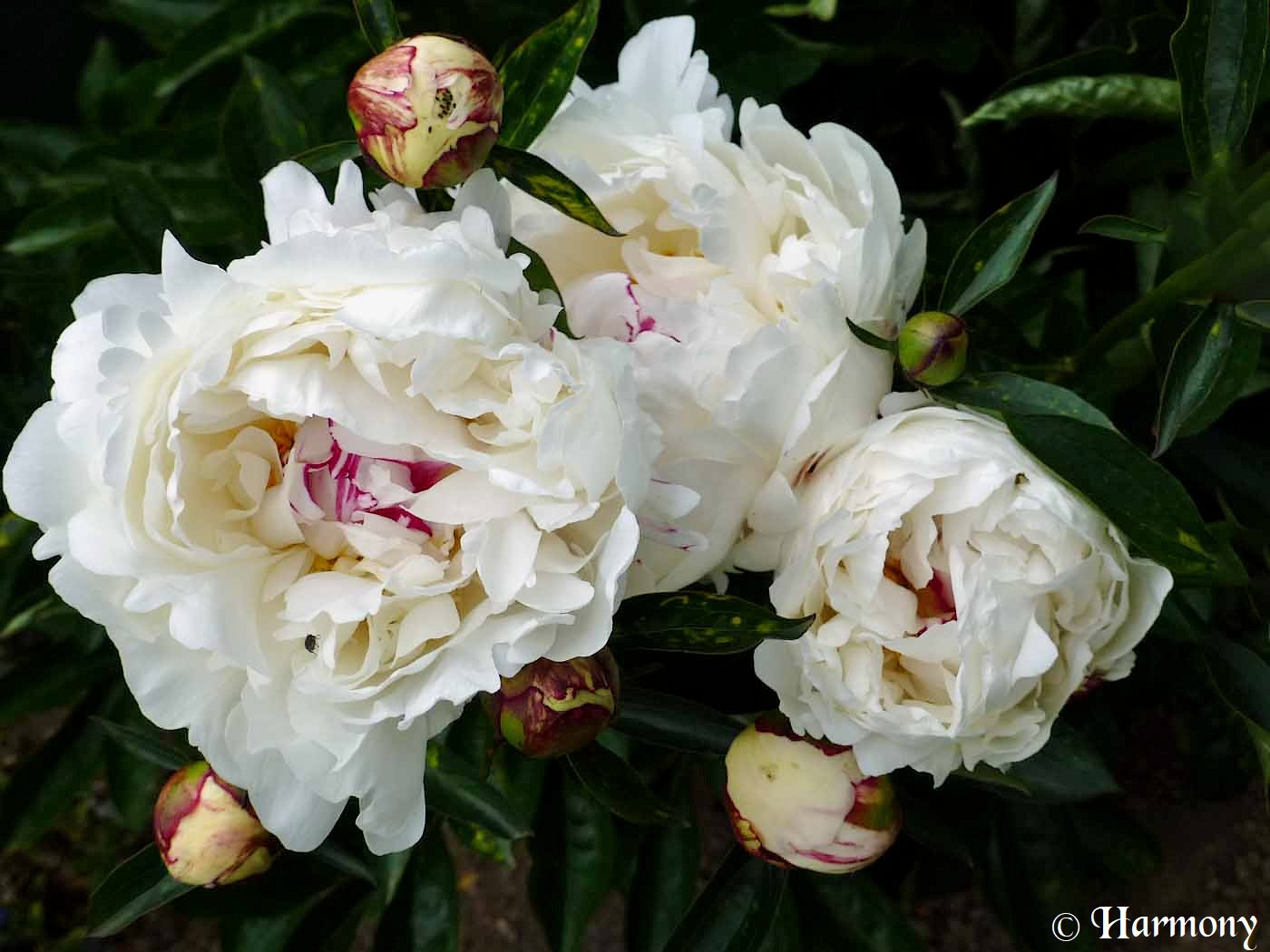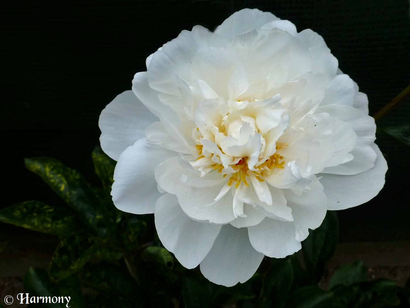 Paeonia ‘Festiva maxima’ est une très belle variété de pivoine de Chine, c’est une vivace herbacée à fleurs doubles blanches et parfumées. De bonne tenue dans les massifs, elle est également parfaite pour la confection de bouquets.La floraison délicate et abondantede cette pivoine se compose de fleurs très doubles apparaissant entre mai et juin qui ne mesurent pas moins de 16cm de diamètre, blanc pur maculées d’un fin liseré rouge carmin et légèrement parfumées.En fleurs pendant presque 1 mois, la Pivoine ‘Festiva Maxima’ forme un buisson d’un mètre de hauteur, le feuillage est vert franc abondant.