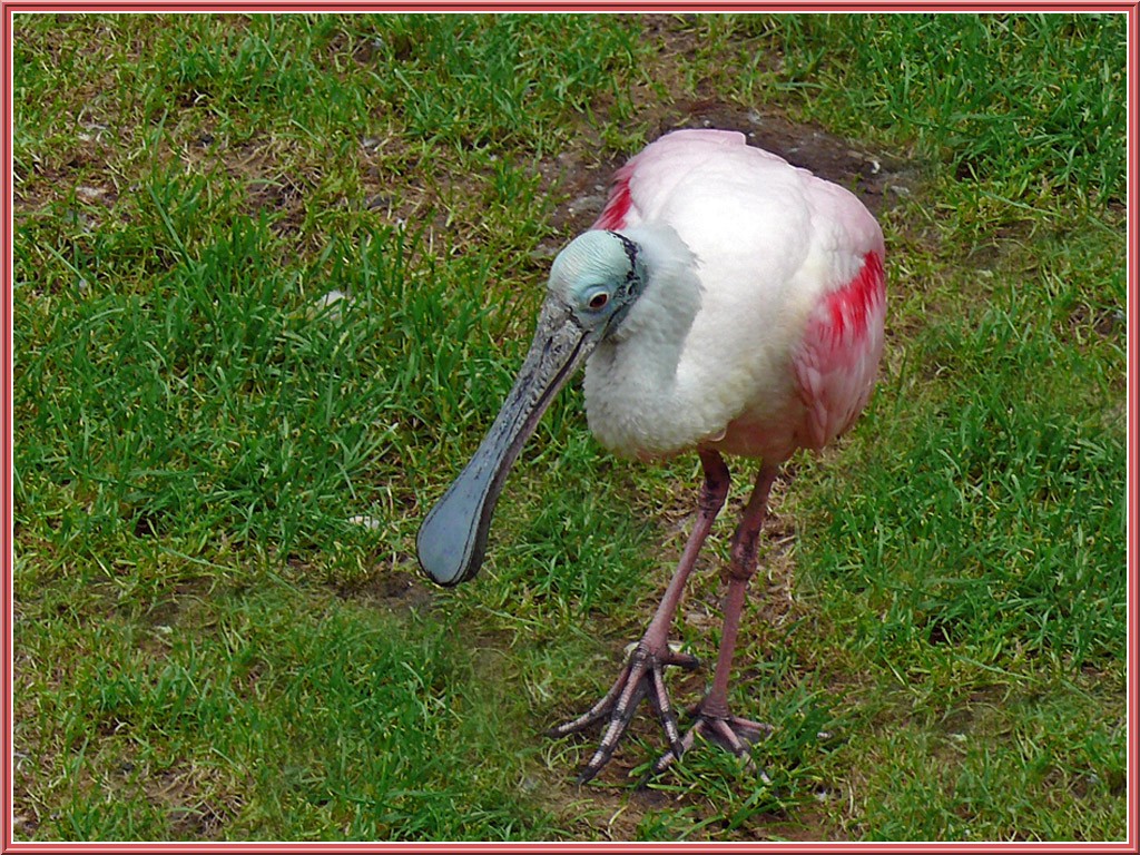long cou avec un long bec en forme de spatule.