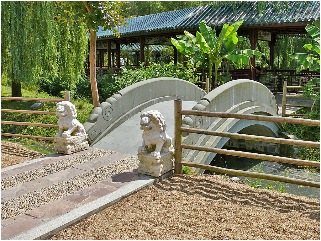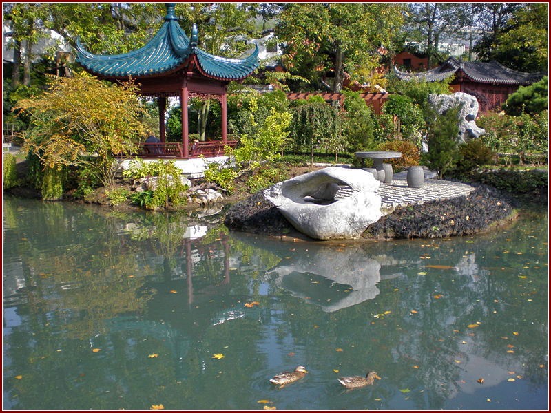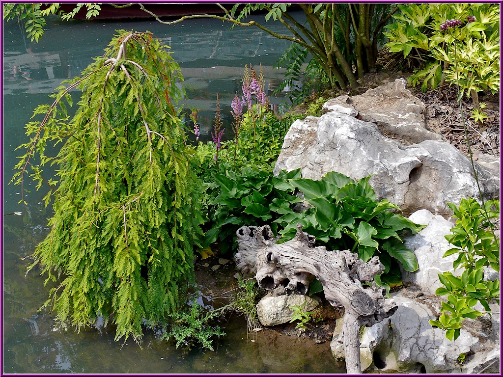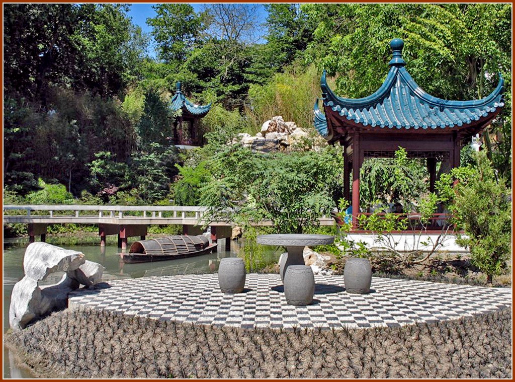 îles,des pavillons,une myriade de végétaux,un jeu