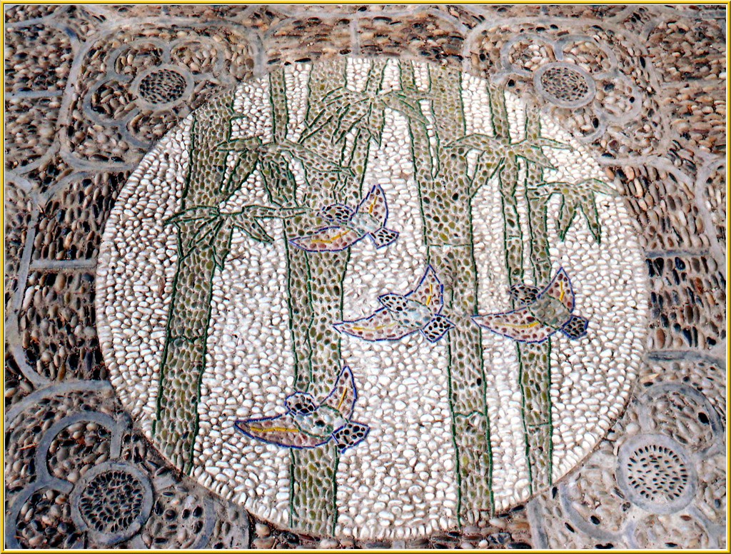 à certains endroits des allées formées de galets.